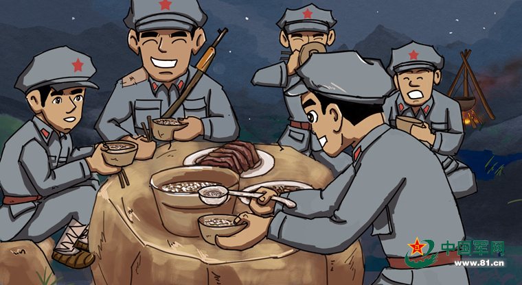 老木孔位于猪场西北方,是个有百十户人家的小村镇,东西都是大山,南北中间有一条小河。河上搭着一座小小的木板桥,河西有一条小街,山下也有几户人家,东面山上有条小路,翻过山去有一条大道。军团命令部队在老木孔宿营休息一晚,明天继续前进。红九军团这时只有两千余人了,已经改编成三个营和一个侦察连。红军战士十多天没有好好休息了,都想晚上睡个舒服觉。开饭号声准时响了,战士们欢天喜地三三两两地把饭筐子、菜盆子团团围住。“多香的饭啊!”“菜盆里居然还有猪肉!”战士们高兴坏了,都没想到在这荒山野岭上还能吃上一顿这样“丰盛”的晚饭。
