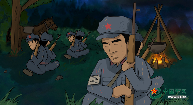 本想在老木孔睡个好觉,可是落空了,大家只得抱着枪,坐在地上,背靠背睡“坐觉”。这是一个紧张的夜晚,战士们虽然闭着眼睛,却一点也睡不着。大家都特别警觉,随时准备应对敌人的偷袭。这时,红军已经被敌人重兵包围了,后面和两侧有敌人八个团,正面老木孔方向有刘文辉的一个师四个团,对红军进行围攻。军团连夜召开营以上干部紧急会议,交代了敌情,讨论了作战计划,分配了战斗任务。