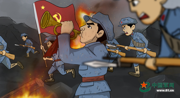 三次正面交锋,没有攻破敌人,红军本来就不多的弹药,到这时也快用完了。大家心里都明白,这样相持下去,那就是等待被敌人消灭,唯一出路就是争取时间冲出去。军团命令二连、三连绕道摸到敌主攻团的后面,实行前后夹攻。虽然快要弹尽粮绝了,但大家并不气馁,仍抱着必胜信心准备与敌决战。大约过了半个小时,敌人后面响起了一阵枪声。“我们的人到了!”战士们高兴地说。“哒哒哒……”紧接着红军阵地响起了冲锋号。经过大半天的战斗,大家本都累了,可是听到了冲锋号声,大伙又精神抖擞起来,战士们端着上了刺刀的枪,一跃而起,迅速向敌人阵地飞奔过去,又一场激烈的搏斗开始了。