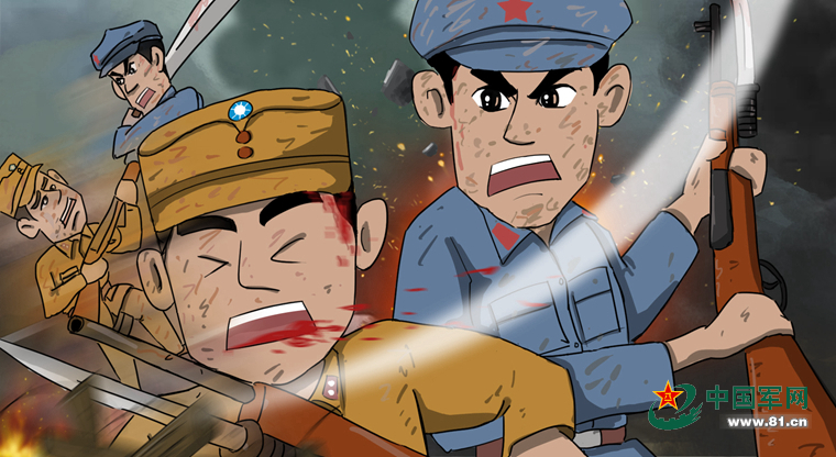 红军战士冒着弹雨,一个劲儿地往前冲,双方短兵相接,开始了白刃格斗。二连、三连的同志也和后面的敌人混战起来。这样前后一夹攻,敌人的阵地马上一片混乱。那些大半天都没有捞到时间过大烟瘾的“烟枪兵”,扔下武器,抱头逃窜。