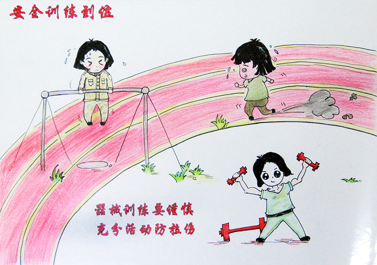 2、安全训练到位。器械训练要谨慎,充分活动防拉伤。训练是大事,安全最重要。打好提前量,学好真本事。