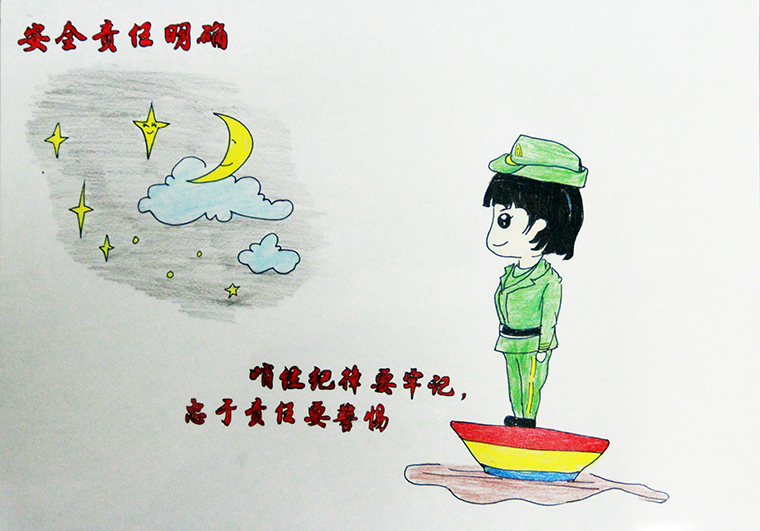 7、安全责任明确。哨位纪律要牢记,忠于责任要警惕。人民战士责任重,哨位最能展荣光。职责时刻牢记心,哨位安全奉献大。