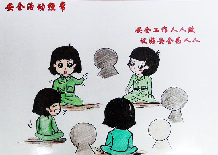 8、安全活动经常。安全工作人人做,做好安全为人人。演讲比赛展风采,手抄报中显风采,黑板报里有常识,人人争做安全员。