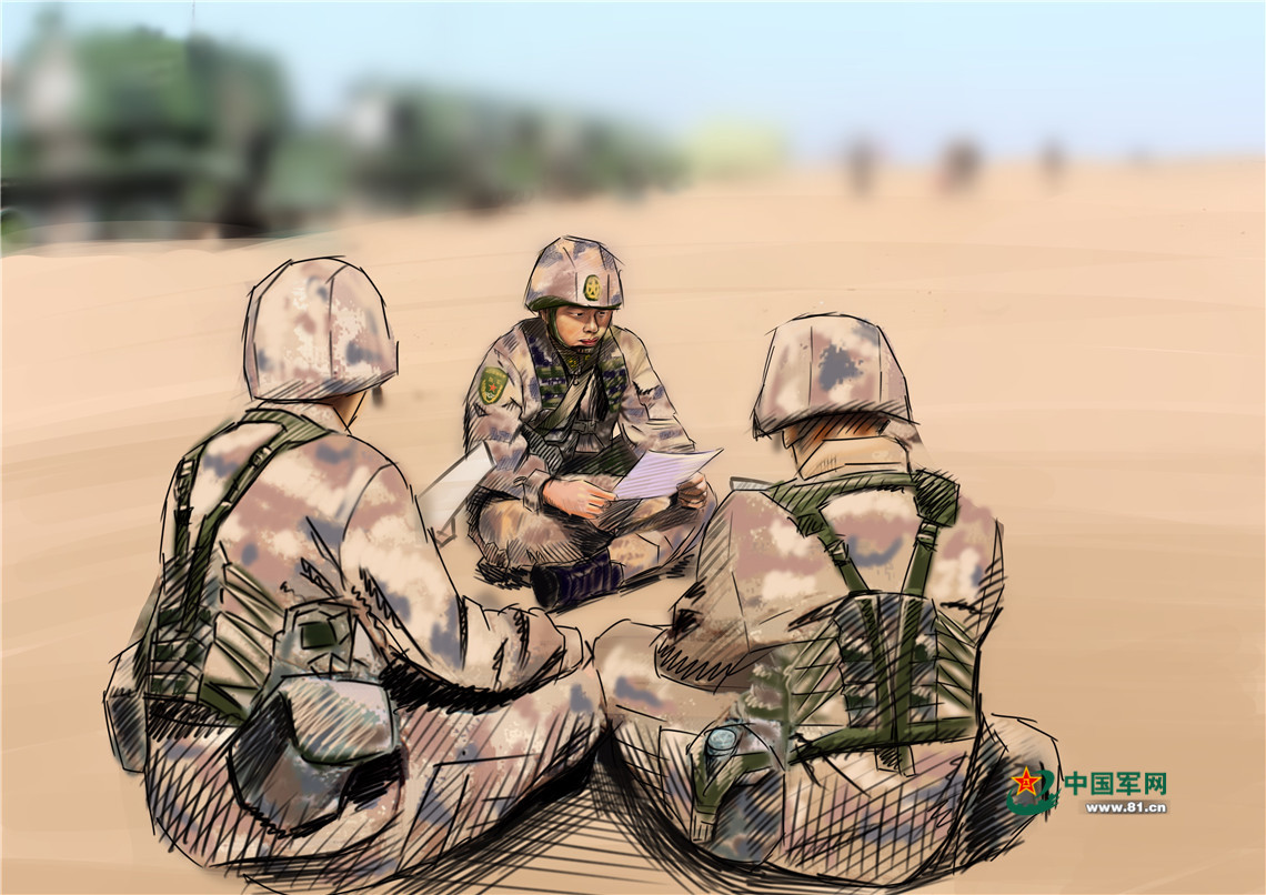 随机学习——战士们在训练之余交流学习十九大精神心得体会。