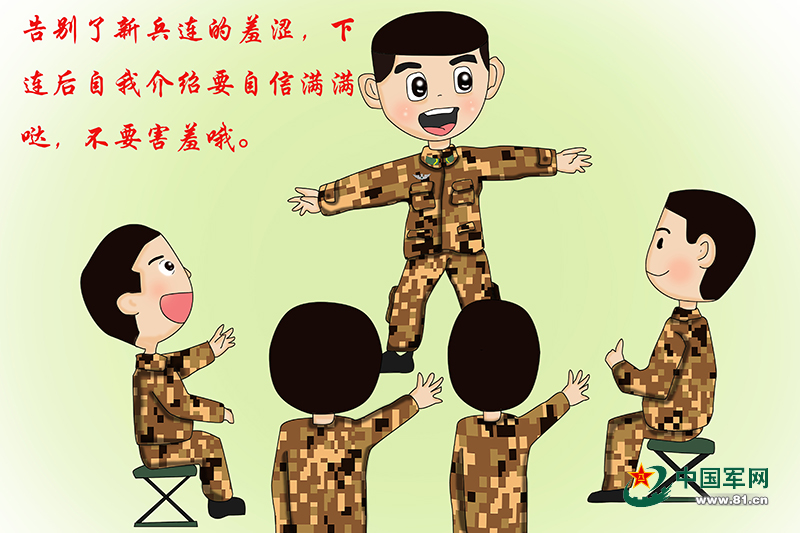 3、告别了新兵连的羞涩,下连后自我介绍要自信满满哒,不要害羞哦。