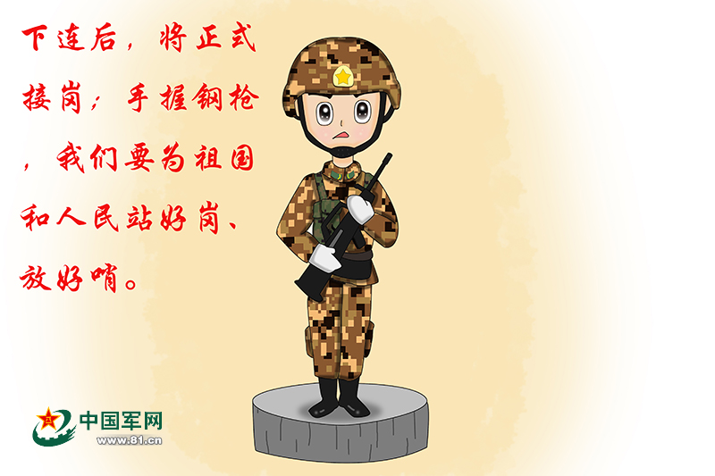 5、下连后,将正式接岗;手握钢枪,我们要为祖国和人民站好岗、放好哨。