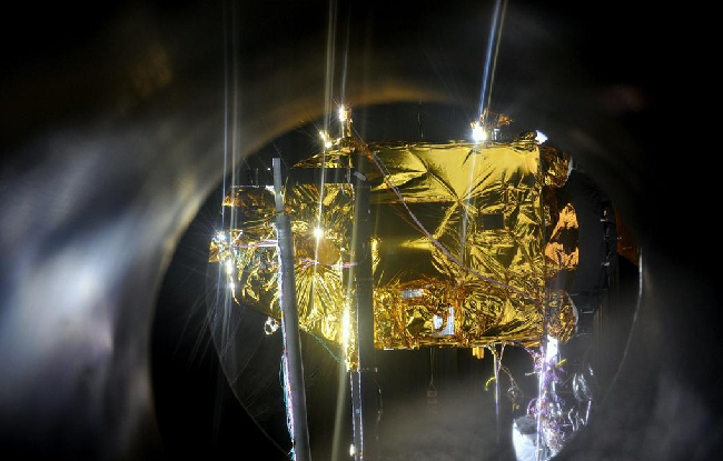 火星探测器在做太空热平衡测试。