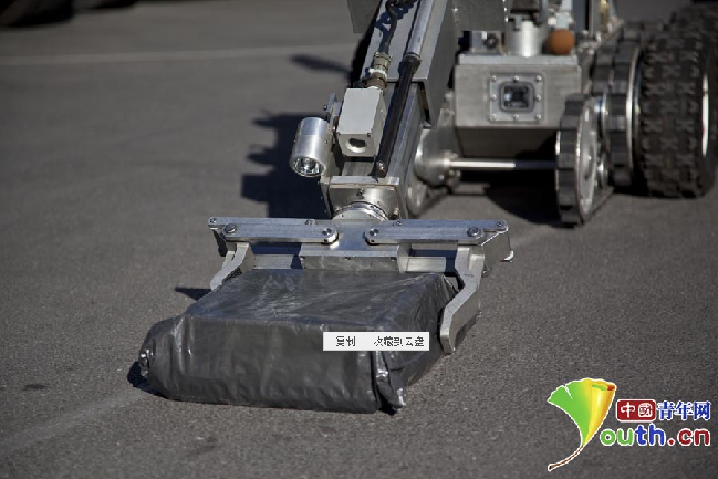 机器人前端机械臂成功抓住“可疑爆炸物”。 中国青年网记者 李拓 摄