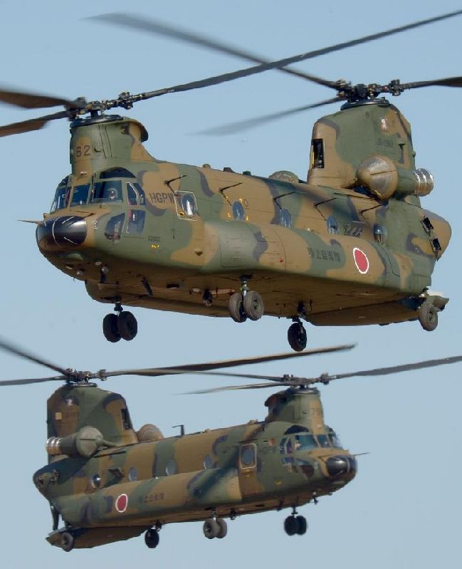 从CH-47运输直升机降落的队员