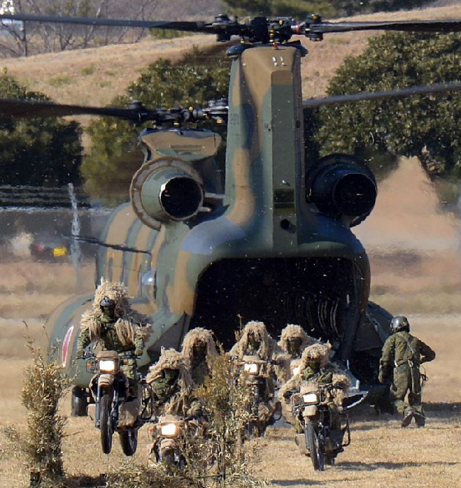 从UH - 1直升机跳下的队员