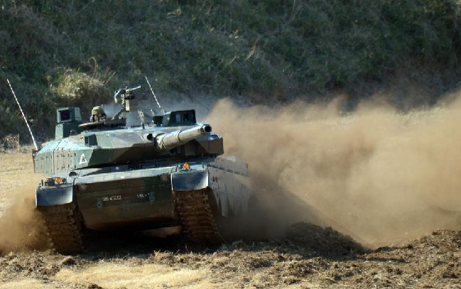 在尘土中疾走的10式坦克
