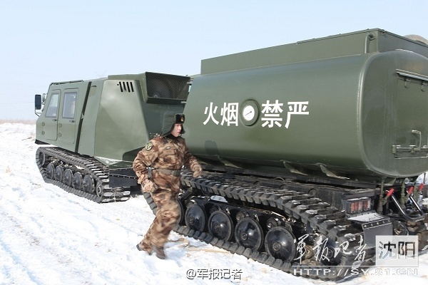 【我军全地形履带式加油车亮相冬训场】1月13日上午,沈阳军区某综合仓库一场油料保障演练中,新配发的全地形履带式加油车首次亮相。全地形履带式加油车可在涉水路、弹坑路等路段行驶,为坦克、装甲车、自行火炮、运输牵引车辆等地面装备实施油料保障,极大改变了油料补给受地域条件限制的模式。