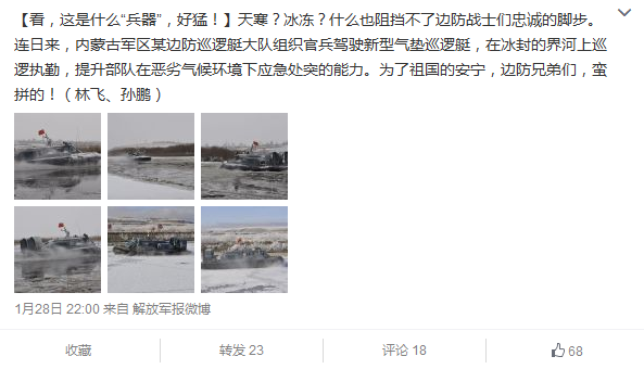 新型气垫巡逻艇亮相边防 这个"兵器"好猛!
