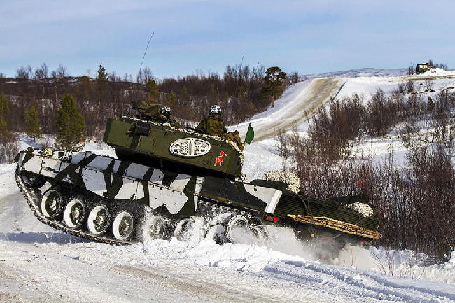 挪威陆军豹2A4坦克雪地驰骋。