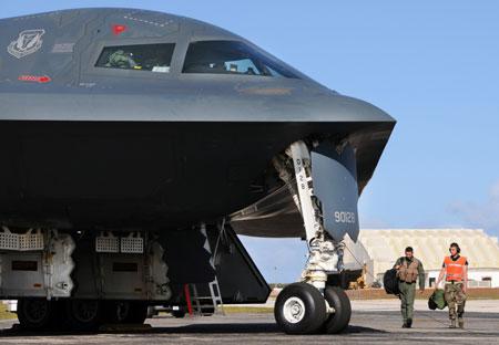B-2轰炸机的两个旋转弹架能携带16枚AGM-129型巡航导弹,也可携带80枚MK82型或16枚MK84型普通炸弹或36枚CBU-87型集束炸弹,使用新型的TSSM远程攻击弹药时携弹量为16枚。