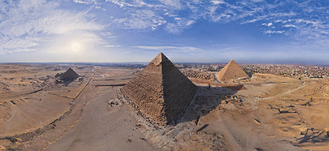 埃及金字塔的全景图着实神秘又壮观。