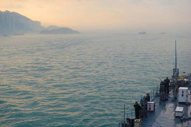 3月23日,停靠在香港青马大桥海域的美国海军第七舰队旗舰“蓝岭号”,邀请传媒登舰参观。“蓝岭号”结束长达6个月的维修期之后,于3月20日抵达香港。这艘两栖指挥舰舷号19,于1970年开始服役,是美国海军作战指挥能力最強的战舰之一,其指挥作战的区域可达1.24亿平方公里,是美国本土面积的十几倍。