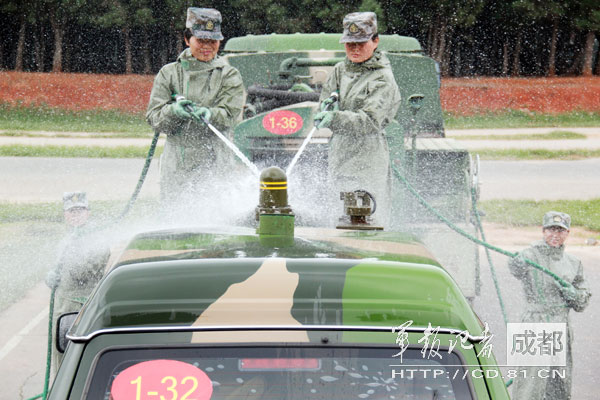 5月初,穿上军装的“白衣天使”李世交身穿防毒衣,第一次上专业课时,站在喷洒车前拿起喷枪准备洗消车辆,竟发起了怵。“开始洗消!”防化骨干罗世礼下达口令后,李世交一捏喷枪,水刚喷出没几米,由于力量不足,喷枪竟从手中滑落。“训练场这么大,我想去看看;课目那么多,叫我们怎么办!”李世交心想:喷枪的后坐力较大,男兵训练起来都比较困难,我们要熟练掌握更是困难。据笔者了解,这样的训练并不少,每次训练结束,手腕、小臂难免会出现红肿,手上的水泡也是一处未好又生一处。