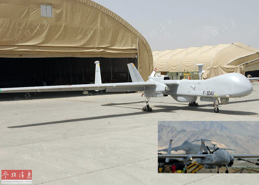图为部署在阿富汗巴格拉姆空军基地的法国空军“雪鸮”(Harfang)无人侦察机,该机实际是基于以色列“苍鹭”I型无人机改进而来。从2009年2月开始,该型机在阿富汗主要负责支援法军的维和行动。
