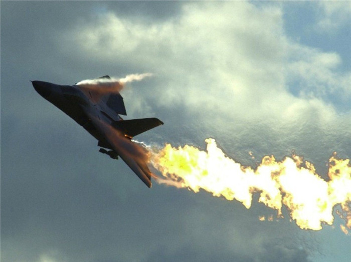 F-111“土豚”( F-111 Aardvark)是在航空史上有非常重要影响的飞机,由美国通用动力于1960年代时开发制造。图为F-111战机喷火。