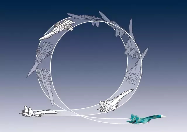 这个动作实际上是飞机以很小的半径在作筋斗,看起来就像是以较低的速度绕着自己尾巴翻了筋斗,说它是个后空翻可能更形象。有一点必须声明,这一特技动作只适用于带推力矢量的喷气式飞机。
