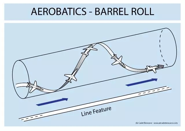 这个动作其实多少有些形象色彩,就是飞机沿着自身的水平轴线作360度滚转,其时真正的桶滚是走螺旋线的。这个动作的历史可以追溯到1905年,当时美国人丹尼尔·马洛尼(Daniel Maloney)首次完成了这个动作。在第二次世界大战中,这一特技动作挽救过无数飞行员的生命,因为在作桶滚时由于杆舵配合的不同,可以让飞机以螺旋线方式完成滚转,使得尾追的敌机难以预测飞行轨迹和瞄准。