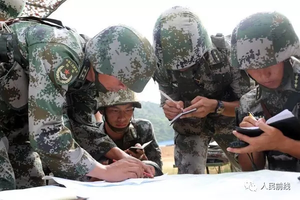 ▲某旅炮兵团参加东部战区陆军建制营比武考核,指挥军官正在紧张进行作战筹划。