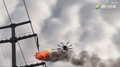有些地方用多旋翼无人机仔细检查电线杆、线塔。甚至有些单位将无人机装上喷火器来清理挂在高压线上的垃圾。工人连爬线塔也免了。