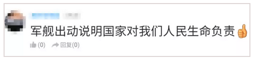 也有网友说,“军舰救渔民”让人民群众感受到了伟大祖国的胸怀,厉害了我的祖国,点一万个赞!