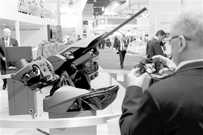 2月19日,一名参观者在国际防务展上拍摄参展武器。新华社记者 赵丁喆摄