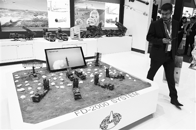 2月20日,参展人员在“中国防务”展区参观FD-2000远程防空导弹武器系统模型。第十三届阿布扎比国际防务展于2月19日至23日在阿联酋首都阿布扎比国家展览中心举行。本届防务展共吸引来自57个国家和地区的1200余家企业参展,其中包括洛克希德·马丁、波音、空客、赛峰等军工、航空和防务设备领域的世界知名企业,突出展示智能化、大数据等尖端科技在国际军工和防务领域的创新应用成果。由中国国家国防科技工业局组织的8家军贸公司以“中国防务”国家展团形式参展,参展总面积达1458平方米,为历年之最。