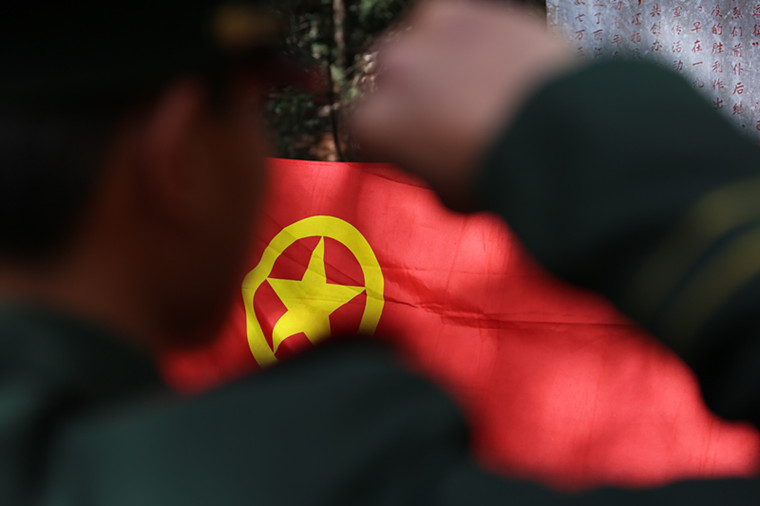 “我志愿加入中国共产主义青年团,坚决拥护中国共产党的领导,遵守团的章程,执行团的决议,履行团员义务,严守团的纪律……自觉做到吃苦在前、享受在后,为共产主义事业而奋斗”。在和志强墓和抗战纪念碑前,几名青年战士面向鲜艳的团旗庄严宣誓。