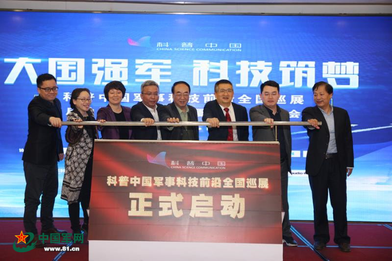 光明网总裁、总编辑杨谷为科普中国军事科技前沿全国巡展厦门站授旗仪式(张瑜 摄)
