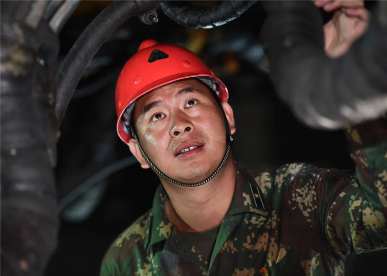沙子呷身先士卒冲上危险作业面。魏玉麟 摄