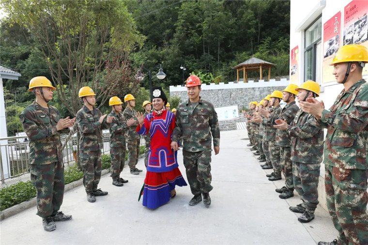 沙子呷妻子莫小梅来队探亲是战士们最快乐的事儿。方雷 摄