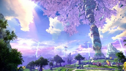 黎明庭园距离新手区不远,给每个初入《TERA》世界的玩家一场优美的视觉盛宴。根悉,黎明庭园是从海底神秘浮出的,所以一些植物还保留着海底生物的特征。总之这是一片蓝色、绿色、紫色碰撞的地区。