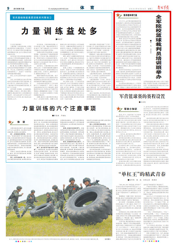 5月17日,由军委训练管理部军事体育训练中心组织的全军院校篮球裁判员专项培训班在江苏南京开始举办,来自全军院校的近百名业余篮球裁判员参加培训。此次举办篮球裁判员培训班,既是为今年贯穿全年的全军院校“强军杯”篮球赛选拔培养裁判人才,也是进一步强化军事体育服务军队、为军队院校培养军事体育组训骨干的有力举措。