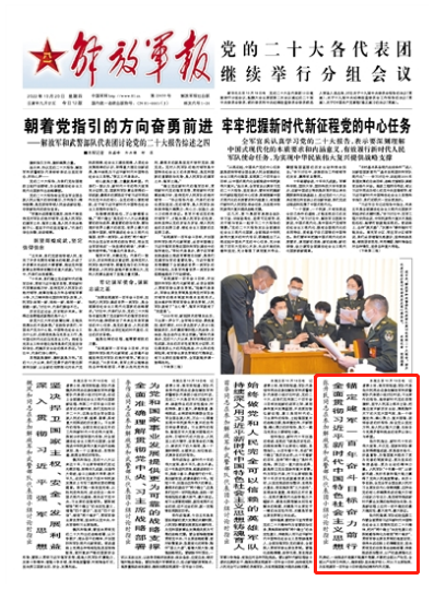 解放军报北京10月19日电 记者费士廷、钱宗阳报道:军队代表张升民同志在参加解放军和武警部队代表团小组讨论时说,习主席作的报告,高举新时代党的思想旗帜,坚守人民至上根本立场,把握应变开新历史主动,展现胸怀天下的大党大国气派,是一个举旗定向、凝心聚力、复兴图强、团结奋进的好报告,给全党以坚定方向,给人民以强大力量,也给当今充满矛盾和挑战的世界以信心与希望。