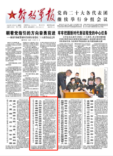 解放军报北京10月19日电 记者费士廷、钱宗阳报道:军队代表李作成同志在参加解放军和武警部队代表团小组讨论时说,党的二十大是百年大党继往开来、铸就伟业的历史性盛会,时机特殊、意义重大,承载厚重、影响深远,必将团结和激励全党全军全国各族人民,万众一心朝着实现中华民族伟大复兴的宏伟目标奋勇前进。习主席作的报告,彰显百年大党复兴图强的大志向、引领时代的大担当、人民至上的大情怀、自我革命的大魄力、兼济天下的大格局,是一个旗帜鲜明、主题突出、站位高远、求真务实的好报告。