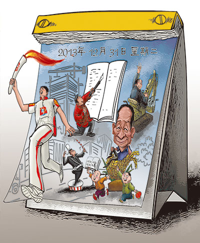 2013年对中国人而言颇不平凡。这一年,“中国梦”成为凝聚人心、激发力量的核心词。从简政放权、转变职能,到八项规定、铁腕治吏,传达着自我革命的决心;收入分配新方案,教育公平新举措,显现出改善民生的力度;上海自贸区起航、嫦娥三号升空、两条丝绸之路在互惠中延伸……中国开放、自信的大国形象悄然升起。这正是: