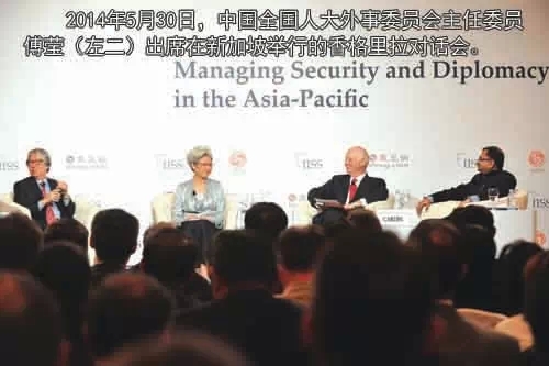 2014年6月1日,由中国人民解放军副总参谋长王冠中和全国人大外事委员会主任委员傅莹带队,中国代表团出席了在新加坡召开的第13届亚洲安全会议,即“香格里拉对话”。