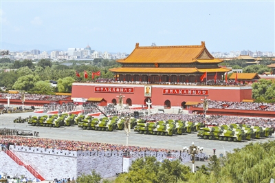 红军将士用热血和生命铸就的长征精神,激励着全军官兵迈步在富国强军的伟大征程中。(2015年9月3日,在纪念抗战胜利70周年首都阅兵中,导弹方队通过天安门广场。本报记者 李三红摄)