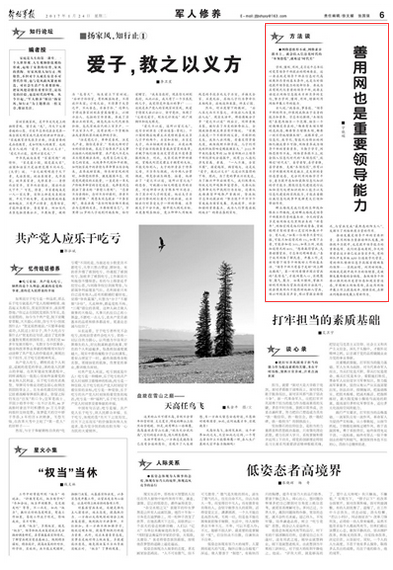推动发展是领导干部的首要职责。善用网络力量推动部队发展,助推战斗力提升,也是提升领导能力的重要选项。我们欣喜地看到,今天的军营在这方面已迈出坚实步伐,有的部队开发军版APP打造数字化营区,有的部队借助信息手段探索精确集约保障……实践证明,利用好网络,网络就是提升战斗力的倍增器,是破解发展难题的金钥匙。各级领导干部要以强烈的历史责任感和现实紧迫感,牢固树立网络思维,在运用网络开展工作上提高效率、增强实效,在解决问题推动发展上有新作为。