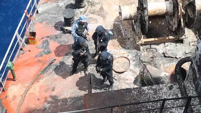 ▲首批护航行动中,海口舰前出接护天裕8号