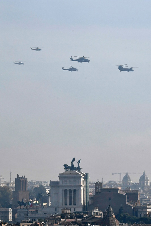11月4日,在意大利首都罗马,直升机编队参加意大利国家团结日庆祝活动。