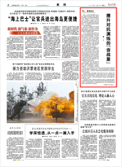 当前,部队全面贯彻习近平强军思想,强化备战打仗的鲜明导向,全面提高新时代打赢能力,就应该像“金头盔”空战竞赛那样,最大程度缩小竞赛与实战的差距,提升对抗演练的“含战量”。请关注今日《解放军报》的报道——