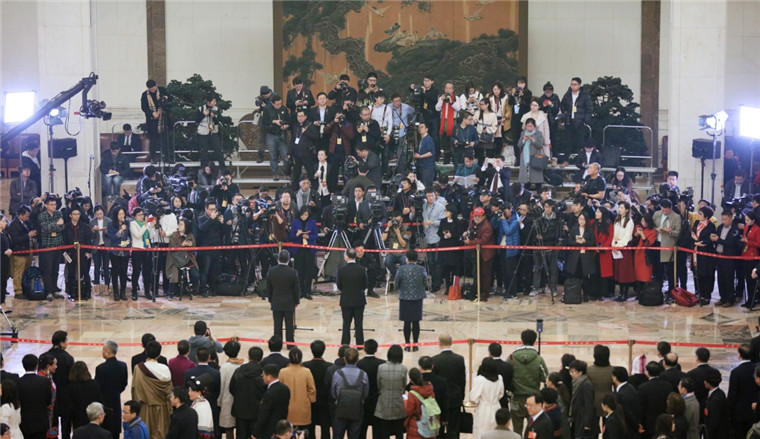 3月13日,十三届全国人大一次会议在北京人民大会堂举行第四次全体会议。这是“代表通道”现场。