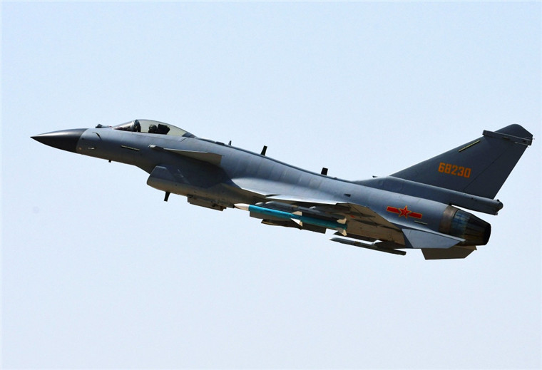 4月12日,空军航空兵某旅歼-10C战机进行飞行训练。新华社 刘川 摄