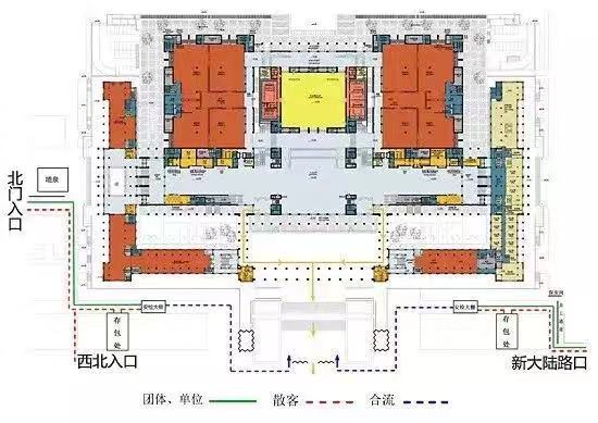您可持本人有效身份证件,通过国家博物馆北门西侧通道、西北口通道和南门新大陆路口进入西门小广场,从西门入馆参观。