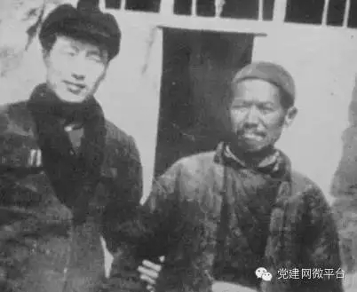 1956年,贺敬之重回延安与延安桥儿沟支书赵步喜(右)合影。